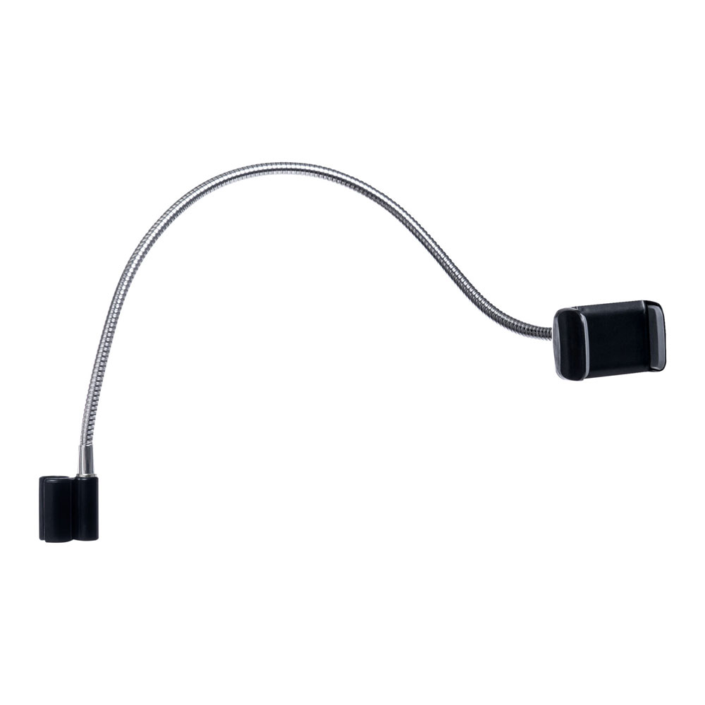 <ul><li>Befestigt sich schnell und einfach an der Lampe</li><li>Robuster flexibler Metallarm (45 cm / 175”) zum Drehen und Positionieren in verschiedene Winkel</li><li>Hält ein Handy präzise ohne die Position zu verlieren</li><li>Integrierte Klammer für schnelles Befestigen und Lösen – hält Handys verschiedener Größen sicher (Klammer öffnet bis zu 9 cm / 35”)</li></ul>