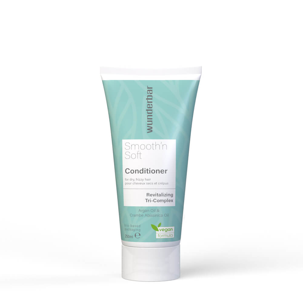 Der Wunderbar Vegan Smooth ’n Soft Conditioner ist ein veganes Haarpflegeprodukt, das die Haare auf natürliche Weise geschmeidig macht und trockenem Haar intensiv Feuchtigkeit spendet. Der 100 % vegane Entwirrungs-Conditioner enthält eine spezielle Mischung aus dem einzigartigen Revitalizing Tri-Complex von Wunderbar, Arganöl und Krambeöl. Die Inhaltsstoffe spenden trockenem Haar intensiv Feuchtigkeit und bekämpfen gleichzeitig Frizz und statische Aufladung – für ein geschmeidiges und sanftes Gefühl, das lange anhält. Verwende den Conditioner für optimale Ergebnisse zusammen mit dem Wunderbar Vegan Smooth ‘n Soft Shampoo.