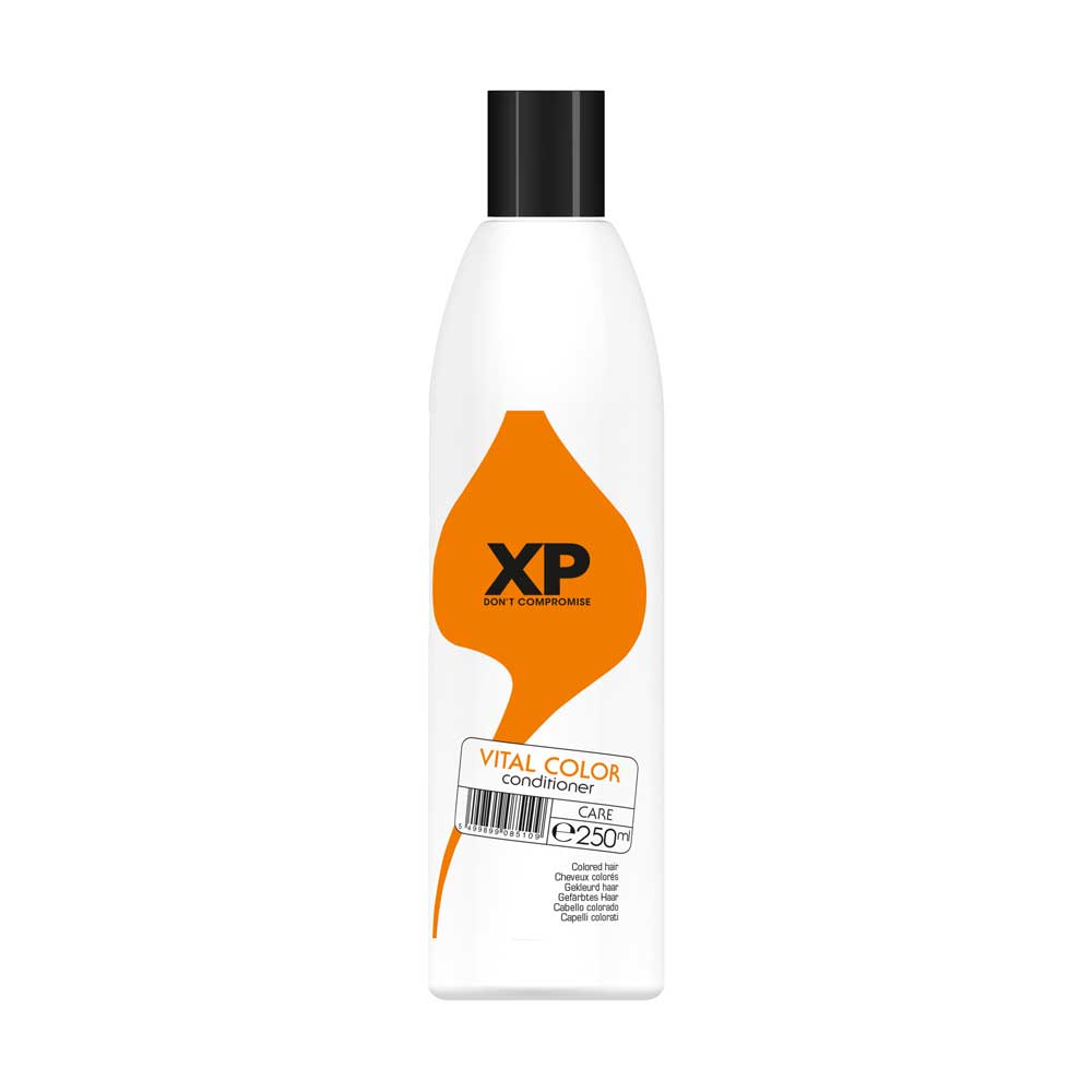Die Spülung Vital Color von XP100 schützt und versorgt Haar und Kopfhaut gründlich mit Feuchtigkeit, ohne zu beschweren.